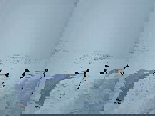 שישה אוהלים הוקמו, כאשר כל אחד מהם מתפקד כחוליה עצמאית. בהמשך נבנו קירות מקרח, בלוקים שנחפרו מהשלג עצמו - כדי להגן על המחנה מהרוח העזה. ואחר כך, ברוחות של כ-96 קמ"ש ומינוס 7 מעלות, הם יצאו לפטרול היקפי, ובהמשך גם לניווט לילה.